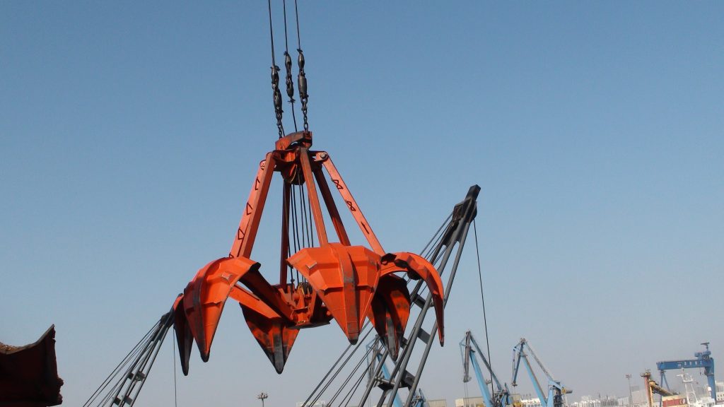 The 4-rope orange peel grab is equipped to four ropes crane for loading some cargos that is difficult to load,such as stone,pig iron,garbage and wood chip with relative big size cargo.